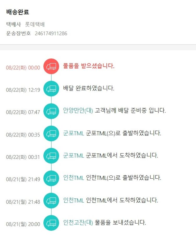 실제 쇼핑몰에서 확인되는 배송현황을 캡처한 내용입니다. 실시간 자료와는 차이가 있을 수 있습니다.