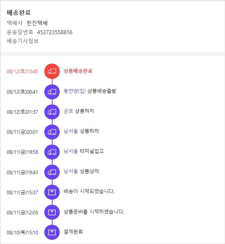 기부자님이 사용한 기부포인트 3,000원, 가격상승분 3,610원, 100원 미만 지원금 90원, 결제 수수료 15,621원, 기타 사업비는 행복나눔재단이 부담했습니다. (기부후기 발송시점에 최종 업데이트 됩니다.) 실제 쇼핑몰에서 확인되는 배송현황을 캡처한 내용입니다. 실시간 자료와는 차이가 있을 수 있습니다.
