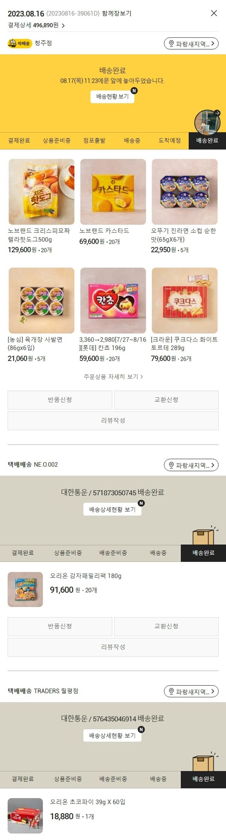 기부자님이 사용한 기부포인트 1,000원, 물품배송비 4,000원, 가격상승분 200원, 100원 미만 지원금 90원, 결제 수수료 15,391원, 기타 사업비는 행복나눔재단이 부담했습니다. (기부후기 발송시점에 최종 업데이트 됩니다.) 실제 쇼핑몰에서 확인되는 배송현황을 캡처한 내용입니다. 실시간 자료와는 차이가 있을 수 있습니다.