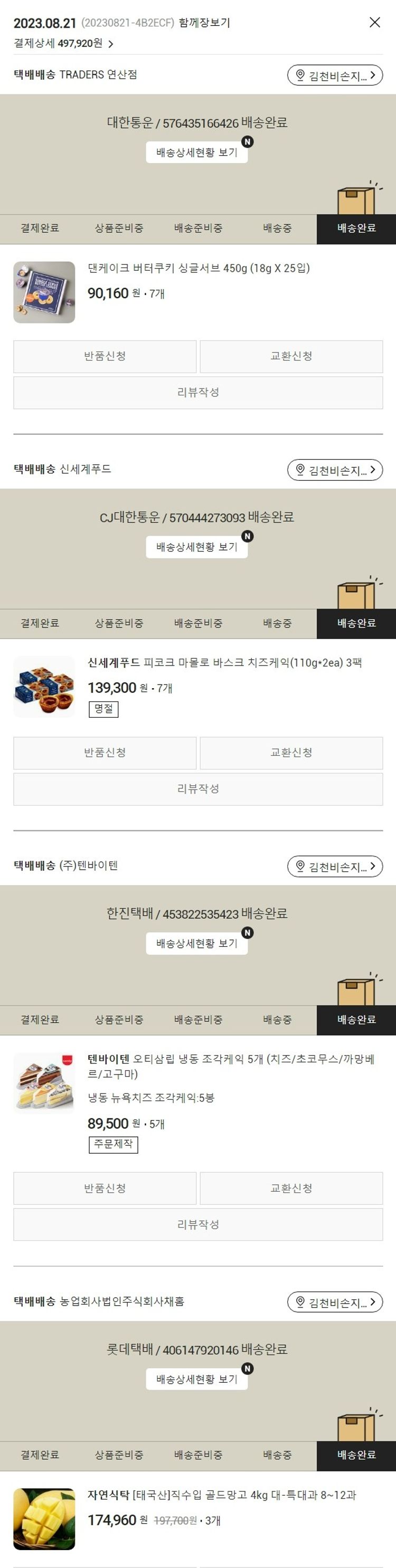 기부자님이 사용한 기부포인트 13,000원, 물품배송비 4,000원, 가격상승분 3,520원, 결제 수수료 9,842원, 기타 사업비는 행복나눔재단이 부담했습니다. (기부후기 발송시점에 최종 업데이트 됩니다.) 실제 쇼핑몰에서 확인되는 배송현황을 캡처한 내용입니다. 실시간 자료와는 차이가 있을 수 있습니다.