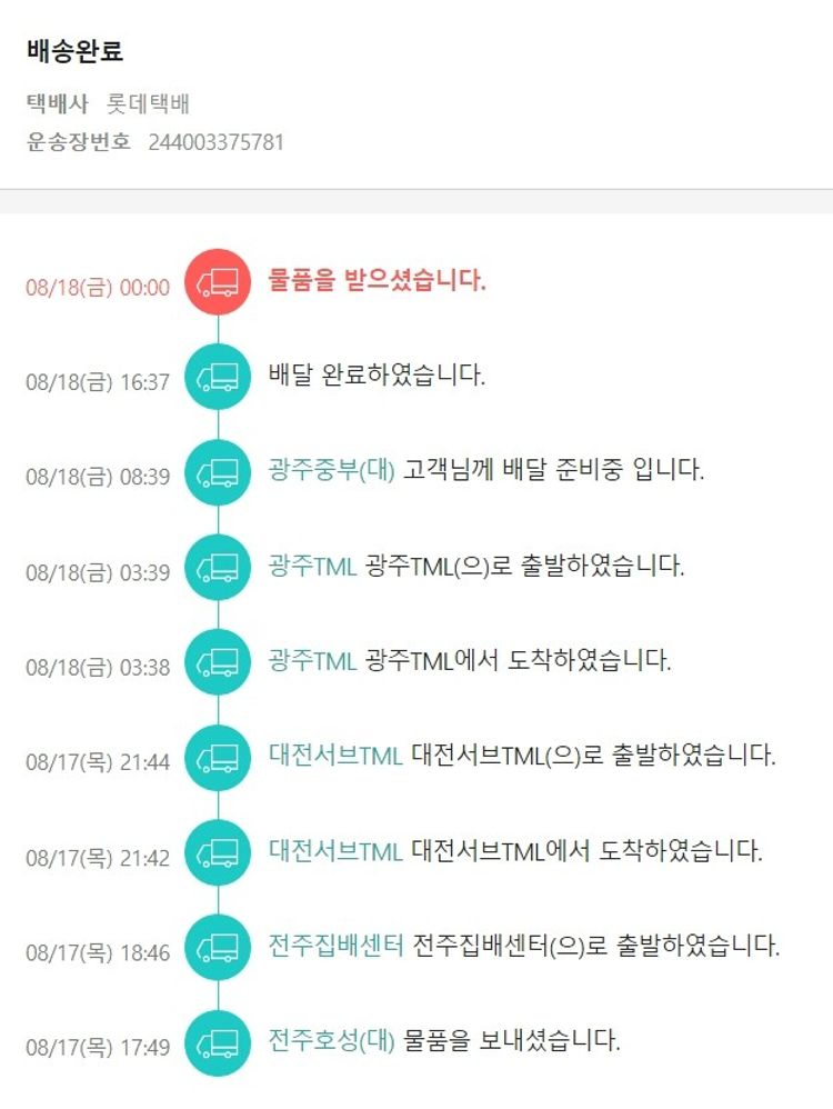 물품배송비 5,900원, 100원 미만 지원금 40원, 결제 수수료 17,216원, 기타 사업비는 행복나눔재단이 부담했습니다. (기부후기 발송시점에 최종 업데이트 됩니다.) 실제 쇼핑몰에서 확인되는 배송현황을 캡처한 내용입니다. 실시간 자료와는 차이가 있을 수 있습니다.