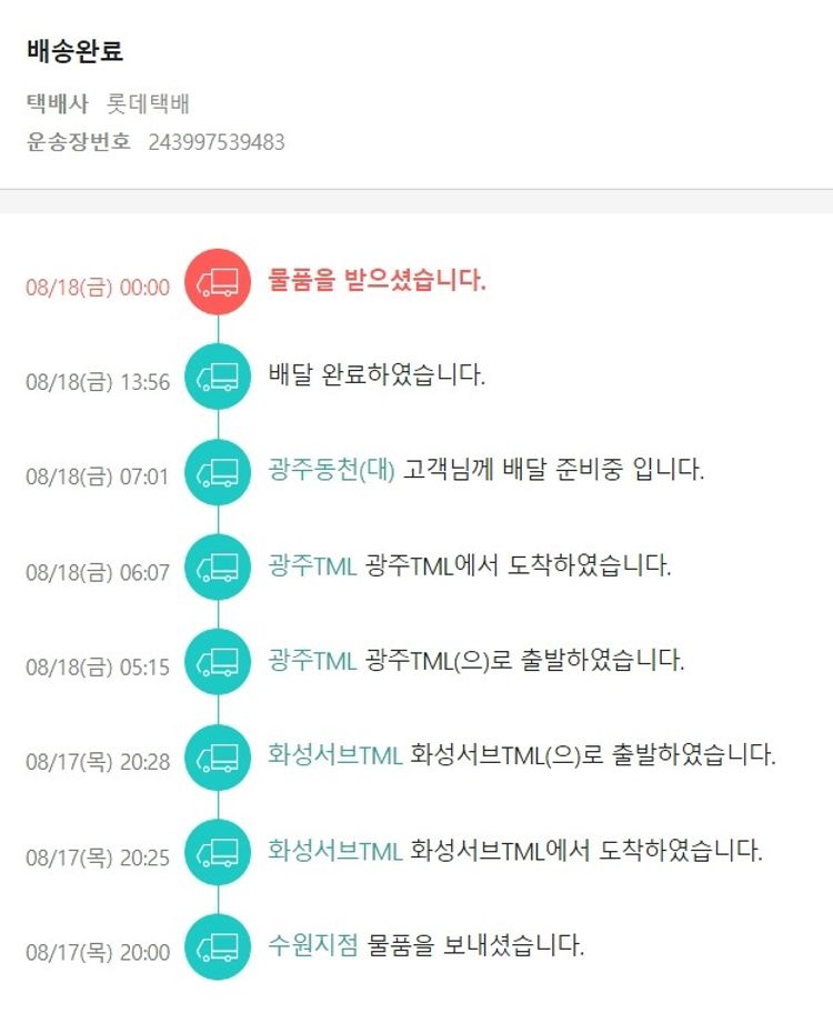 기부자님이 사용한 기부포인트 3,700원, 물품배송비 6,000원, 100원 미만 지원금 22원, 결제 수수료 11,646원, 기타 사업비는 행복나눔재단이 부담했습니다. (기부후기 발송시점에 최종 업데이트 됩니다.) 실제 쇼핑몰에서 확인되는 배송현황을 캡처한 내용입니다. 실시간 자료와는 차이가 있을 수 있습니다.