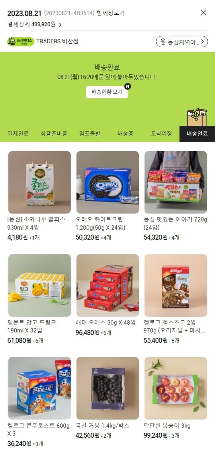 기부자님이 사용한 기부포인트 7,000원, 가격상승분 3,380원, 100원 미만 지원금 40원, 결제 수수료 11,086원, 기타 사업비는 행복나눔재단이 부담했습니다. (기부후기 발송시점에 최종 업데이트 됩니다.) 실제 쇼핑몰에서 확인되는 배송현황을 캡처한 내용입니다. 실시간 자료와는 차이가 있을 수 있습니다.