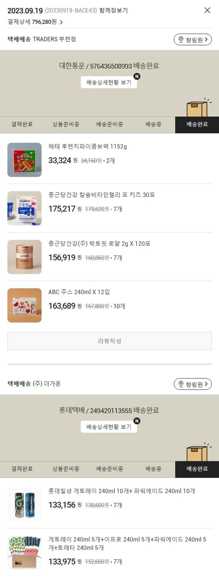 기부자님이 사용한 기부포인트 48,100원, 가격상승분 424원, 100원 미만 지원금 56원, 결제 수수료 17,018원, 기타 사업비는 행복나눔재단이 부담했습니다. (기부후기 발송시점에 최종 업데이트 됩니다.) 실제 쇼핑몰에서 확인되는 배송현황을 캡처한 내용입니다. 실시간 자료와는 차이가 있을 수 있습니다.