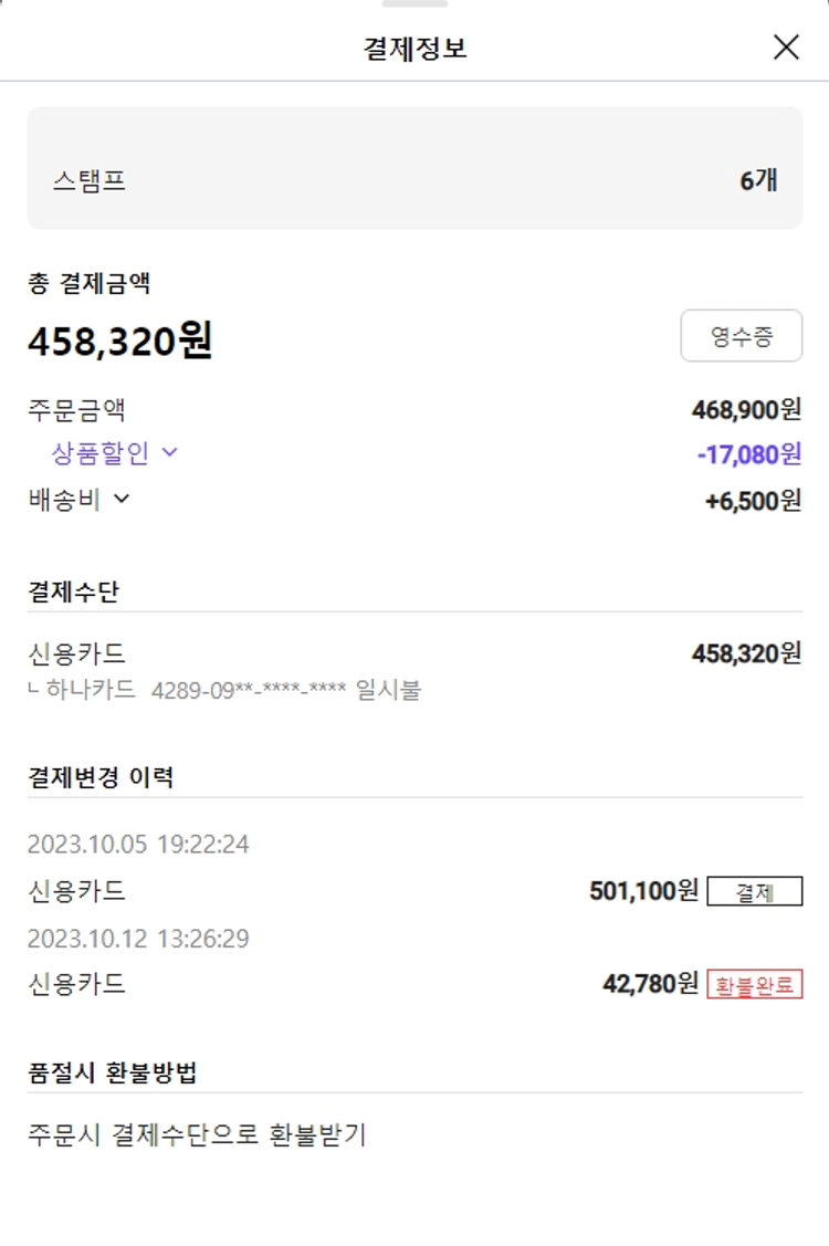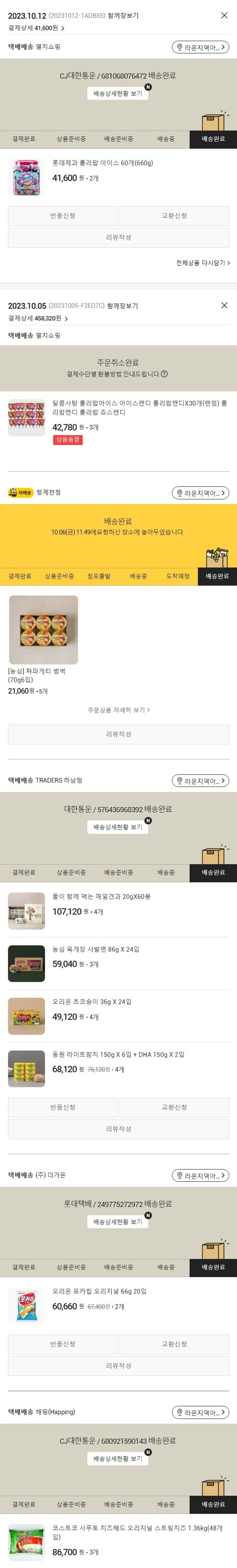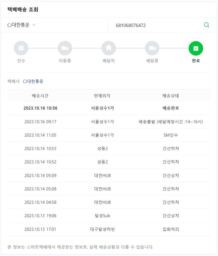 기부자님이 사용한 기부포인트 4,150원, 물품배송비 6,500원, 가격상승분 40원, 100원 미만 지원금 80원, 결제 수수료 11,558원, 기타 사업비는 행복나눔재단이 부담했습니다. (기부후기 발송시점에 최종 업데이트 됩니다.) 주문 건 중 품절 건 발생하여 2023. 10. 12. 재주문했습니다. 실제 쇼핑몰에서 확인되는 배송현황을 캡처한 내용입니다. 실시간 자료와는 차이가 있을 수 있습니다.