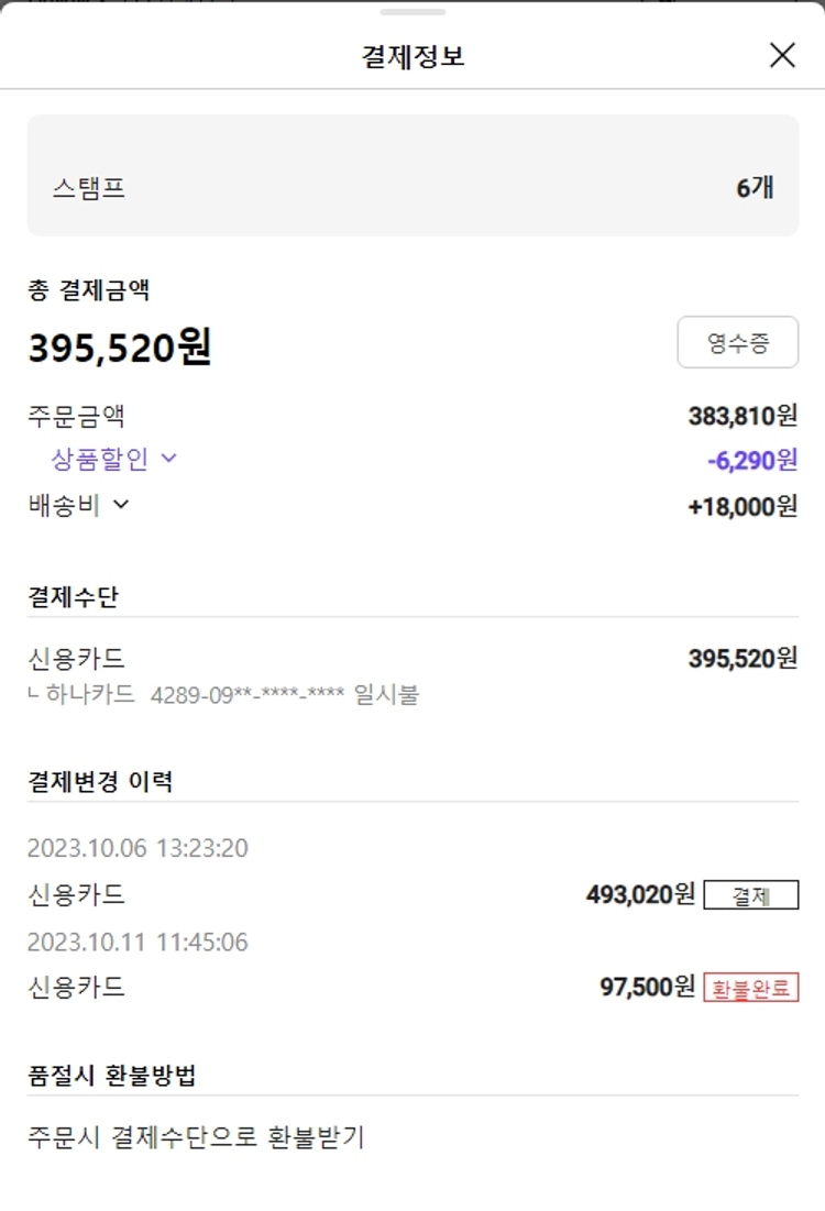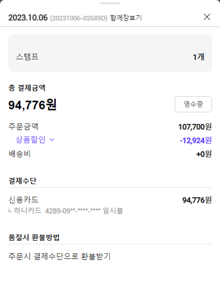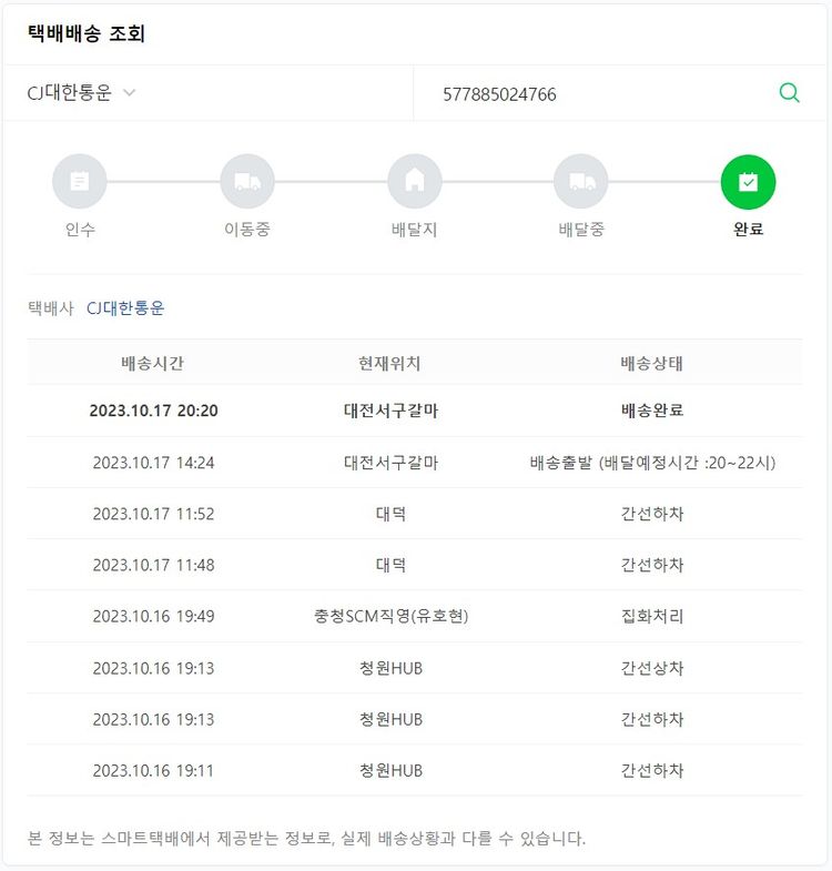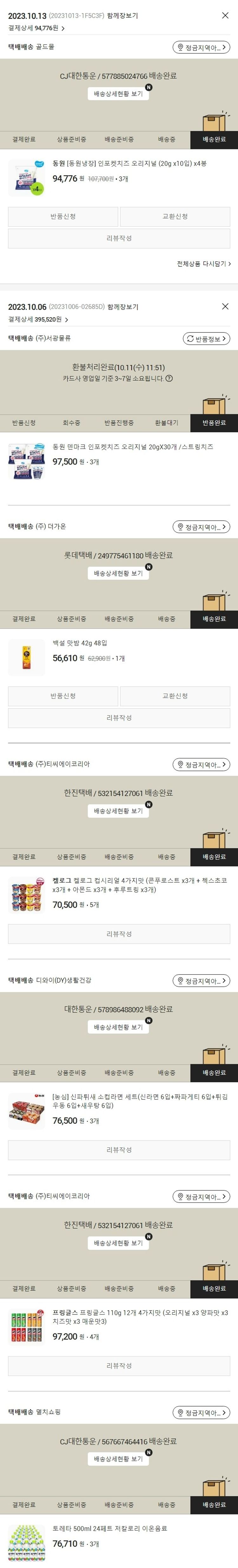 기부자님이 사용한 기부포인트 4,950원, 물품배송비 18,000원, 가격상승분 336원, 100원 미만 지원금 60원, 결제 수수료 11,751원, 기타 사업비는 행복나눔재단이 부담했습니다. (기부후기 발송시점에 최종 업데이트 됩니다.) 주문 건 중 품절 건 발생하여 2023. 10. 13. 재주문했습니다. 실제 쇼핑몰에서 확인되는 배송현황을 캡처한 내용입니다. 실시간 자료와는 차이가 있을 수 있습니다.