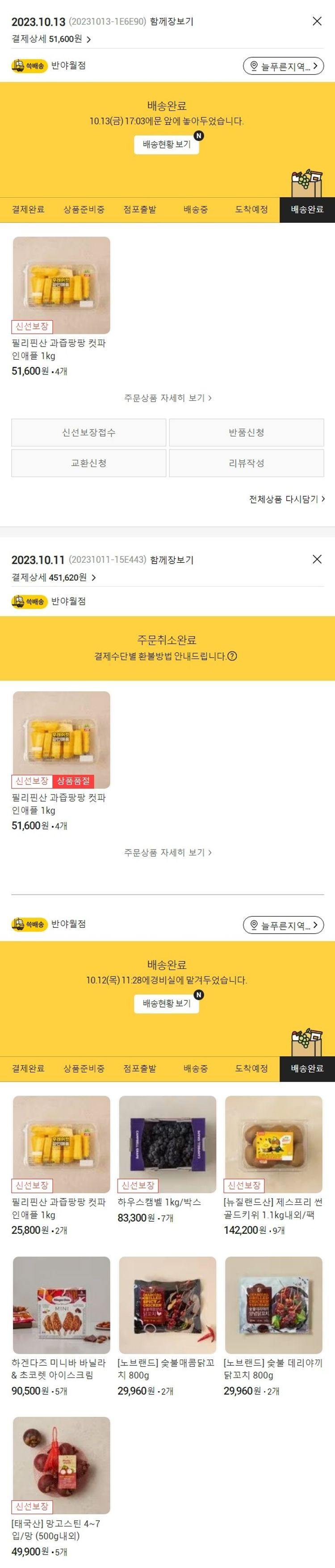 기부자님이 사용한 기부포인트 3,000원, 가격상승분 2,500원, 100원 미만 지원금 20원, 결제 수수료 12,364원, 기타 사업비는 행복나눔재단이 부담했습니다. (기부후기 발송시점에 최종 업데이트 됩니다.) 주문 건 중 품절 건 발생하여 2023. 10. 13. 재주문했습니다. 실제 쇼핑몰에서 확인되는 배송현황을 캡처한 내용입니다. 실시간 자료와는 차이가 있을 수 있습니다.