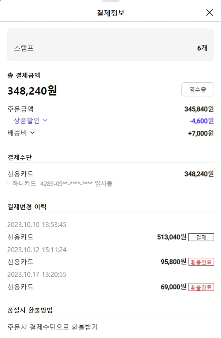 주문 건 중 품절 건 발생하여 2023. 10. 17. 재주문했습니다.