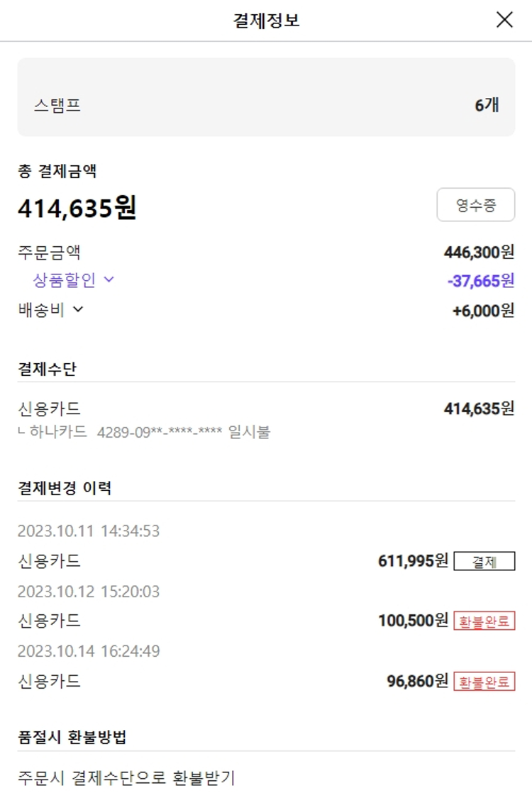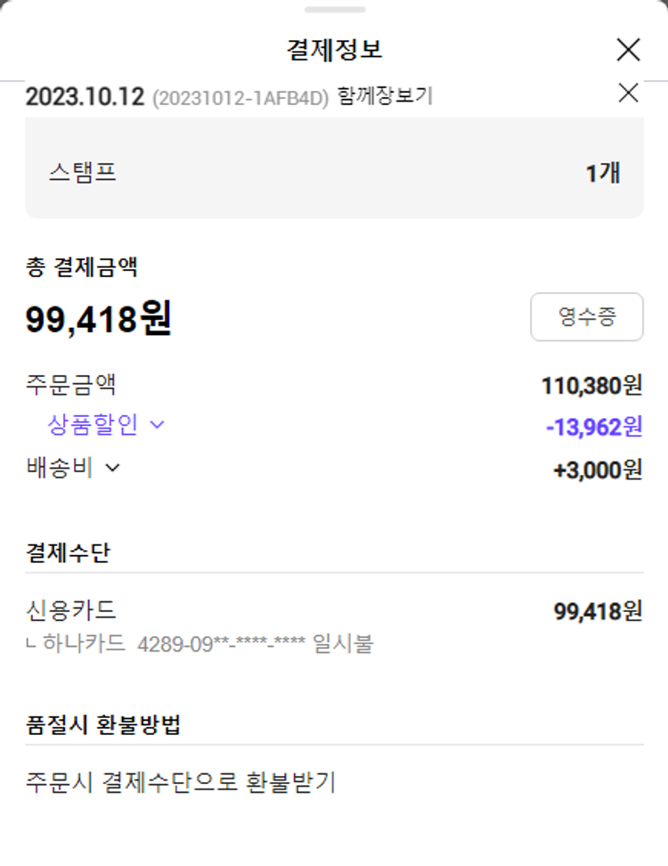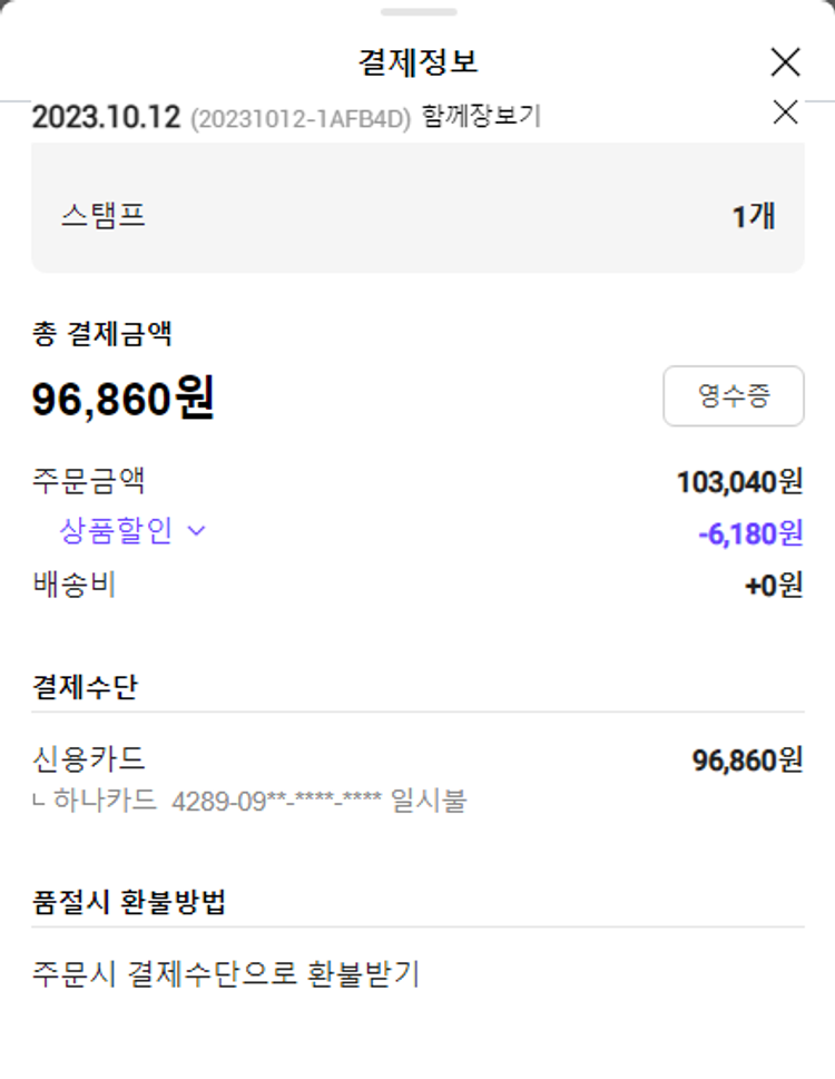 주문 건 중 배송 완료되었으나 환불된 건이 있어 2023. 10. 17. 재주문했습니다.