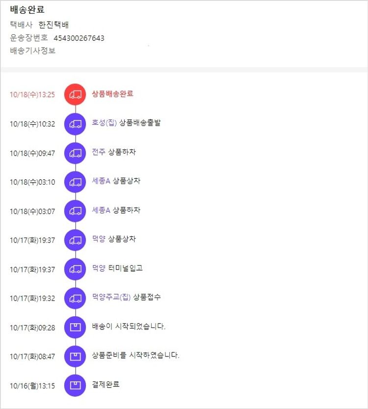 기부자님이 사용한 기부포인트 1,100원, 물품배송비 12,000원, 가격상승분 85원, 100원 미만 지원금 54원, 결제 수수료 11,369원, 기타 사업비는 행복나눔재단이 부담했습니다. (기부후기 발송시점에 최종 업데이트 됩니다.) 실제 쇼핑몰에서 확인되는 배송현황을 캡처한 내용입니다. 실시간 자료와는 차이가 있을 수 있습니다.