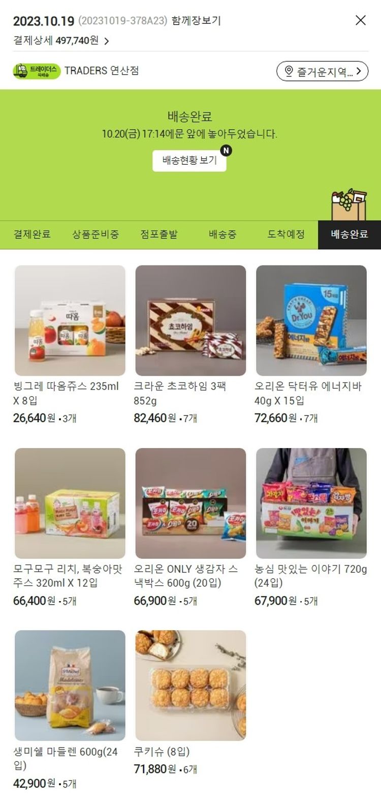 기부자님이 사용한 기부포인트 5,000원, 100원 미만 지원금 40원, 결제 수수료 9,213원, 기타 사업비는 행복나눔재단이 부담했습니다. (기부후기 발송시점에 최종 업데이트 됩니다.) 실제 쇼핑몰에서 확인되는 배송현황을 캡처한 내용입니다. 실시간 자료와는 차이가 있을 수 있습니다.