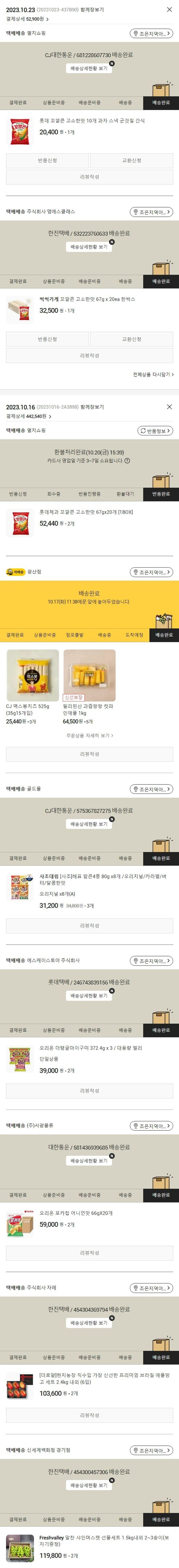 기부자님이 사용한 기부포인트 3,500원, 가격상승분 460원, 100원 미만 지원금 80원, 결제 수수료 9,609원, 기타 사업비는 행복나눔재단이 부담했습니다. (기부후기 발송시점에 최종 업데이트 됩니다.) 주문 건 중 품절 건 발생하여 2023. 10. 23. 재주문했습니다. 실제 쇼핑몰에서 확인되는 배송현황을 캡처한 내용입니다. 실시간 자료와는 차이가 있을 수 있습니다.