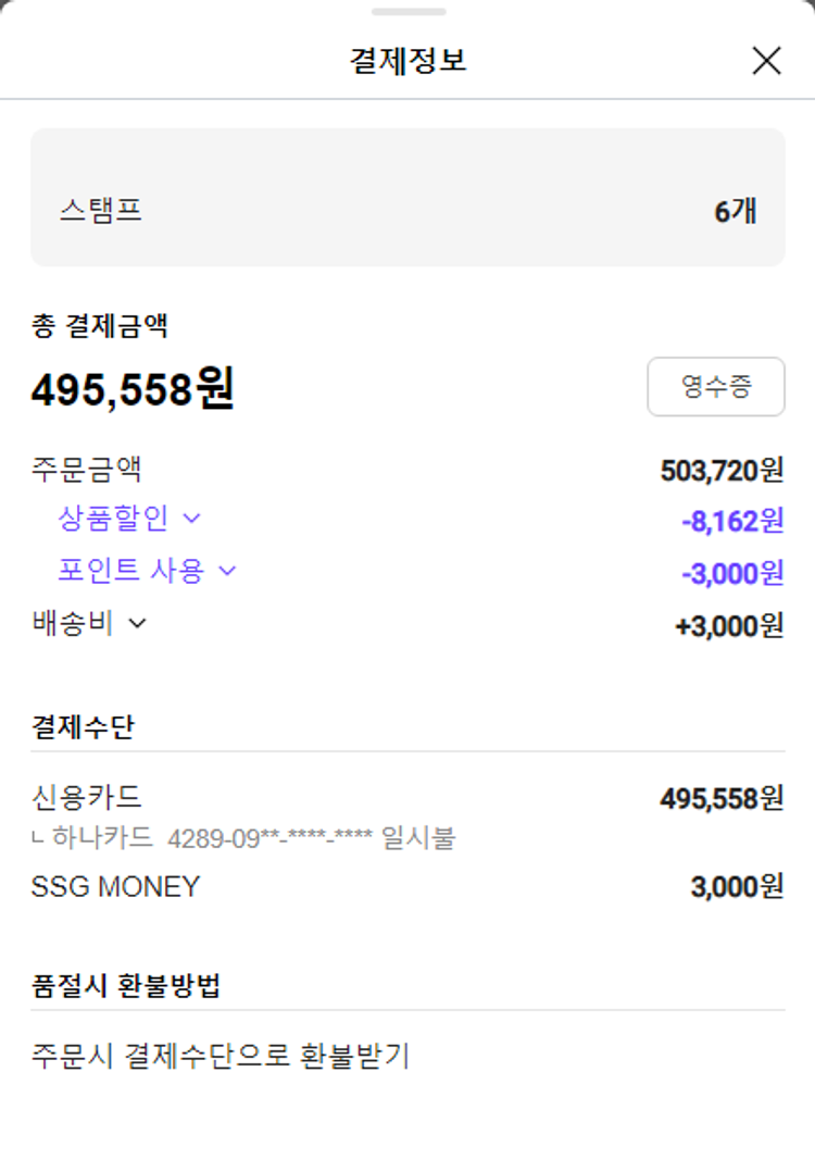 가격상승분 2,058원, SSG 머니 3,000포인트, 결제 수수료 10,936원, 기타 사업비는 행복나눔재단이 부담했습니다. (기부후기 발송시점에 최종 업데이트 됩니다.) * 배송비 3,000원은 SSG 머니 결제 실제 쇼핑몰에서 확인되는 배송현황을 캡처한 내용입니다. 실시간 자료와는 차이가 있을 수 있습니다.