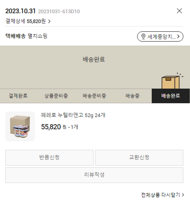 주문 건 중 SSG 서비스 오류로 취소된 건이 있어 2023. 10. 31. 재주문하였습니다.