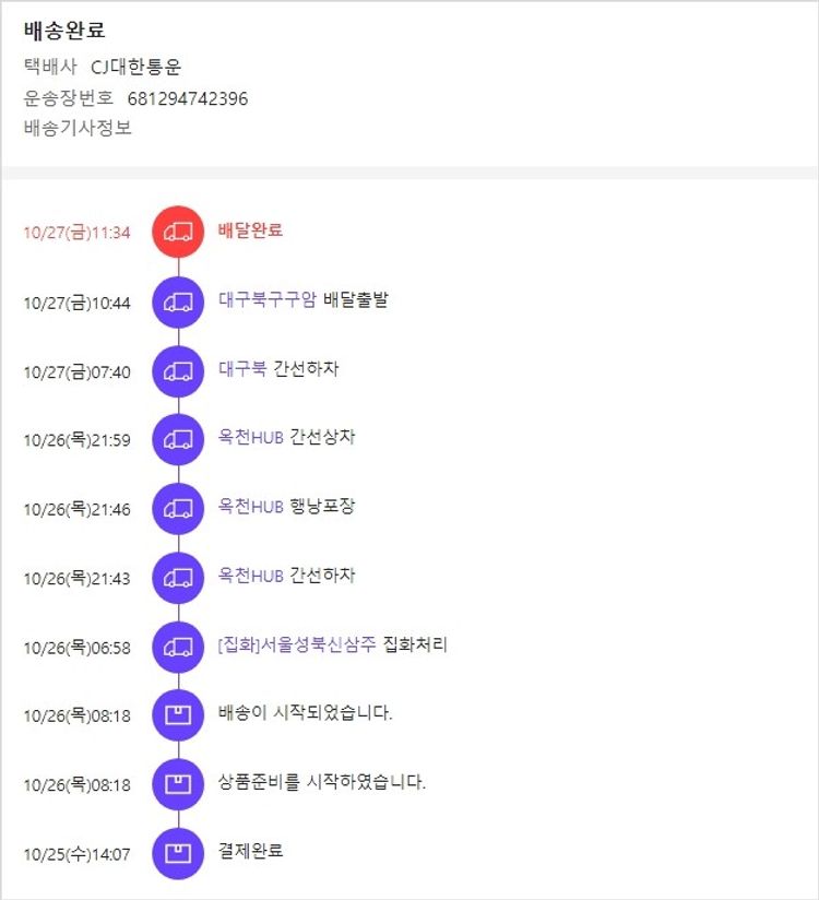 기부자님이 사용한 기부포인트 33,500원, 가격상승분 314원, 100원 미만 지원금 80원, SSG 머니 3,500포인트, 결제 수수료 11,495원, 기타 사업비는 행복나눔재단이 부담했습니다. (기부후기 발송시점에 최종 업데이트 됩니다.) * 배송비 3,500원은 SSG머니로 결제 실제 쇼핑몰에서 확인되는 배송현황을 캡처한 내용입니다. 실시간 자료와는 차이가 있을 수 있습니다.