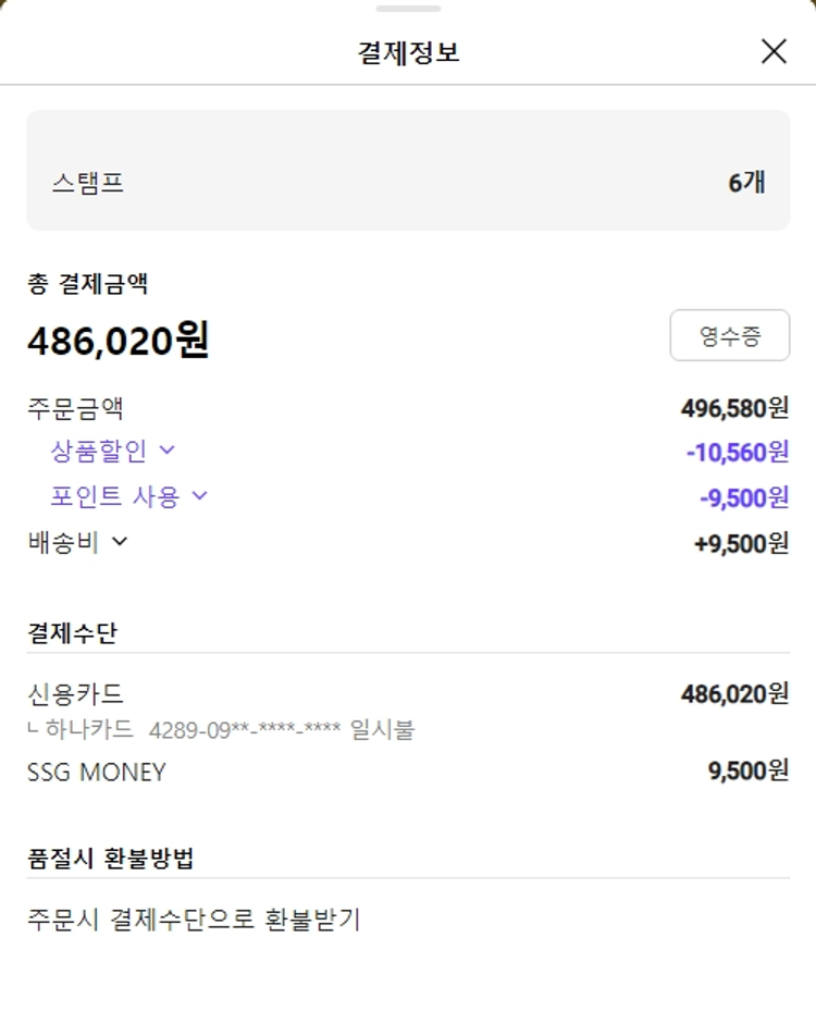 기부자님이 사용한 기부포인트 4,000원, 가격상승분 528원, 100원 미만 지원금 92원, SSG 머니 9,500포인트, 결제 수수료 9,002원, 기타 사업비는 행복나눔재단이 부담했습니다. (기부후기 발송시점에 최종 업데이트 됩니다.) * 배송비 9,500원은 SSG 머니로 결제 실제 쇼핑몰에서 확인되는 배송현황을 캡처한 내용입니다. 실시간 자료와는 차이가 있을 수 있습니다.