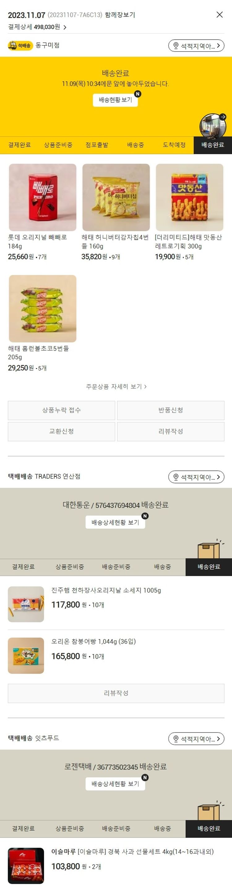 가격상승분 1,110원, 100원 미만 지원금 20원, 결제 수수료 12,839원, 기타 사업비는 행복나눔재단이 부담했습니다. (기부후기 발송시점에 최종 업데이트 됩니다.) 실제 쇼핑몰에서 확인되는 배송현황을 캡처한 내용입니다. 실시간 자료와는 차이가 있을 수 있습니다.