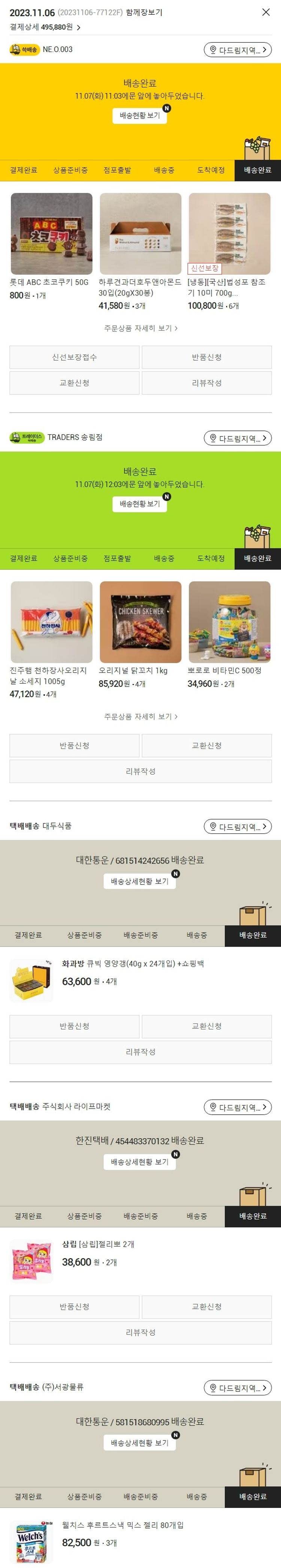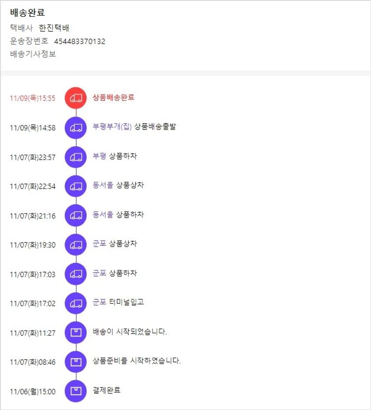 기부자님이 사용한 기부포인트 3,000원, 가격상승분 140원, 100원 미만 지원금 40원, 결제 수수료 12,035원, 기타 사업비는 행복나눔재단이 부담했습니다. (기부후기 발송시점에 최종 업데이트 됩니다.) 실제 쇼핑몰에서 확인되는 배송현황을 캡처한 내용입니다. 실시간 자료와는 차이가 있을 수 있습니다.