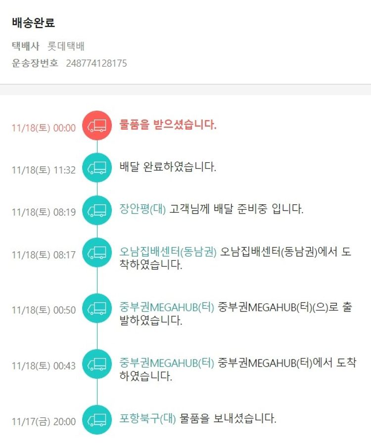 실제 쇼핑몰에서 확인되는 배송현황을 캡처한 내용입니다. 실시간 자료와는 차이가 있을 수 있습니다.