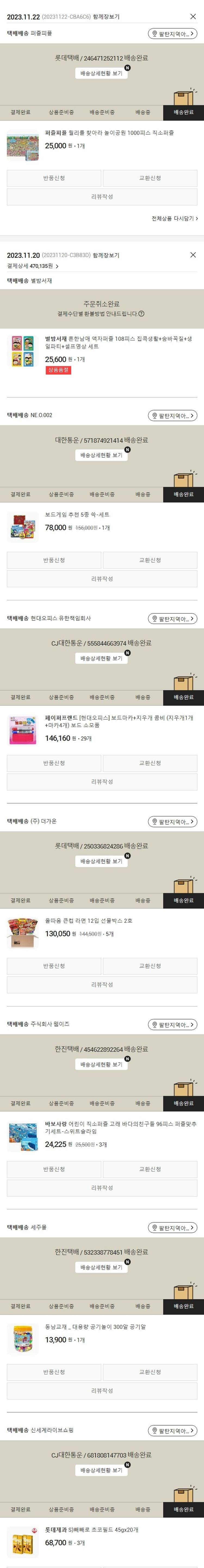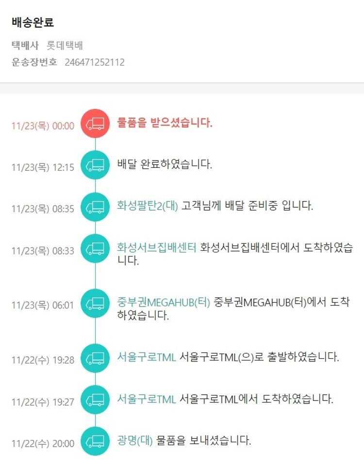 실제 쇼핑몰에서 확인되는 배송현황을 캡처한 내용입니다. 실시간 자료와는 차이가 있을 수 있습니다.