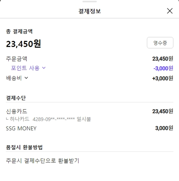 * 배송비 3,000원은 SSG머니로 결제