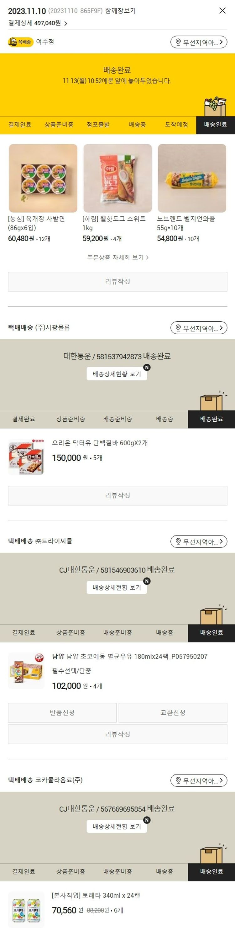 기부자님이 사용한 기부포인트 2,500원, 가격상승분 5,200원, 100원 미만 지원금 40원, 결제 수수료 14,510원, 기타 사업비는 행복나눔재단이 부담했습니다. (기부후기 발송시점에 최종 업데이트 됩니다.) 실제 쇼핑몰에서 확인되는 배송현황을 캡처한 내용입니다. 실시간 자료와는 차이가 있을 수 있습니다.
