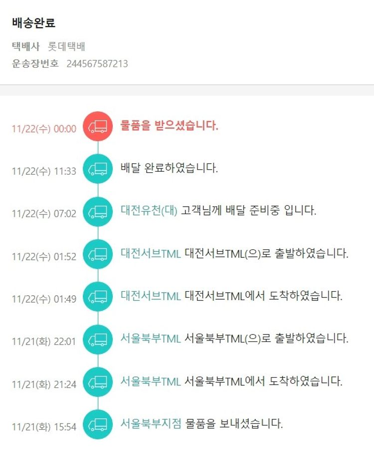 실제 쇼핑몰에서 확인되는 배송현황을 캡처한 내용입니다. 실시간 자료와는 차이가 있을 수 있습니다.