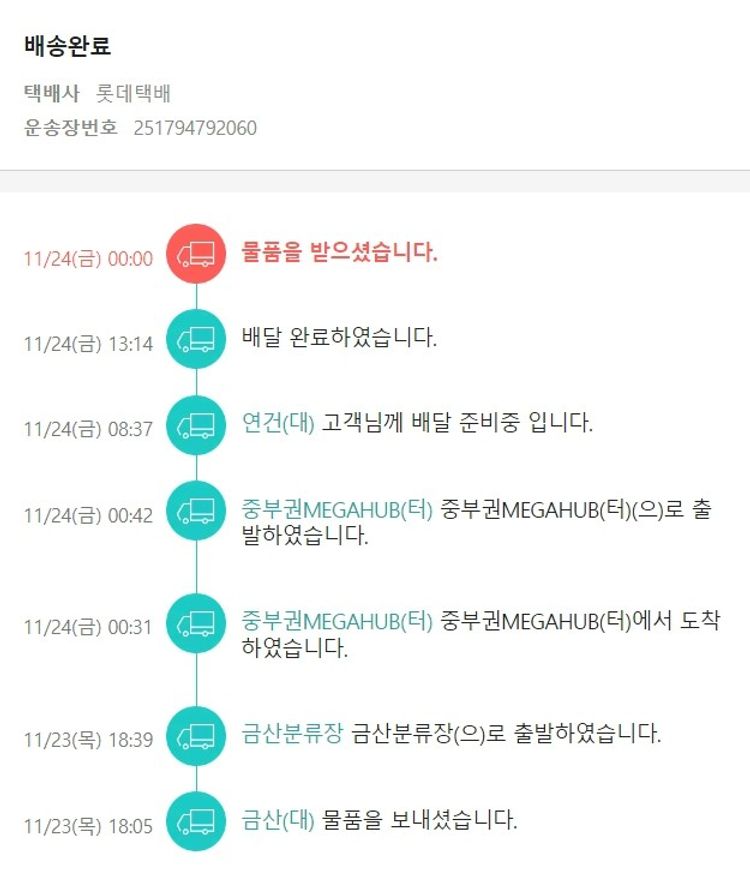 100원 미만 지원금 30원, 결제 수수료 17,783원, 기타 사업비는 행복나눔재단이 부담했습니다. (기부후기 발송시점에 최종 업데이트 됩니다.) 실제 쇼핑몰에서 확인되는 배송현황을 캡처한 내용입니다. 실시간 자료와는 차이가 있을 수 있습니다.