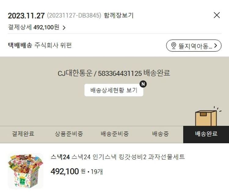 기부자님이 사용한 기부포인트 34,900원, 결제 수수료 10,171원, 기타 사업비는 행복나눔재단이 부담했습니다. (기부후기 발송시점에 최종 업데이트 됩니다.) 실제 쇼핑몰에서 확인되는 배송현황을 캡처한 내용입니다. 실시간 자료와는 차이가 있을 수 있습니다.