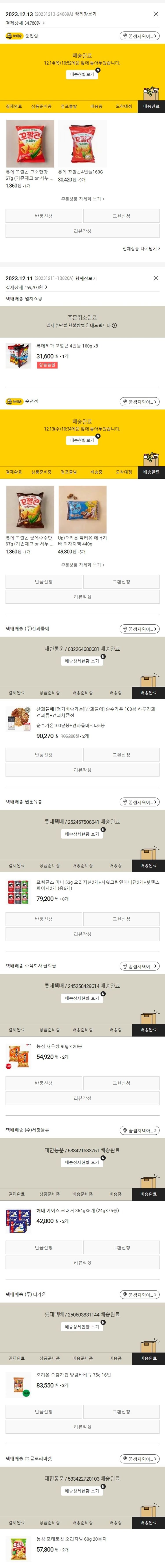 실제 쇼핑몰에서 확인되는 배송현황을 캡처한 내용입니다. 실시간 자료와는 차이가 있을 수 있습니다.