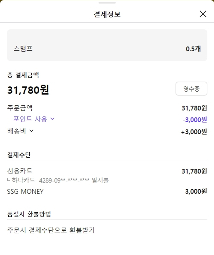 * 배송비 3,000원은 SSG머니로 결제