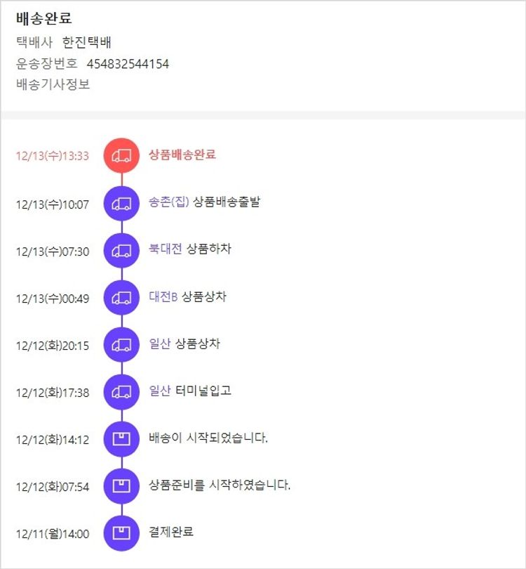 기부자님이 사용한 기부포인트 2,600원, 물품배송비 13,000원, 100원 미만 지원금 2원, 결제 수수료 12,093원, 기타 사업비는 행복나눔재단이 부담했습니다. (기부후기 발송시점에 최종 업데이트 됩니다.) 실제 쇼핑몰에서 확인되는 배송현황을 캡처한 내용입니다. 실시간 자료와는 차이가 있을 수 있습니다.