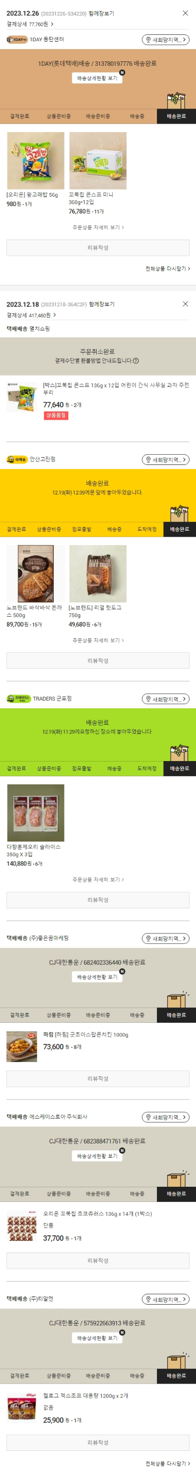 기부자님이 사용한 기부포인트 18,000원, 가격상승분 120원, 결제 수수료 10,257원, 기타 사업비는 행복나눔재단이 부담했습니다. (기부후기 발송시점에 최종 업데이트 됩니다.) 주문 건 중 품절 건 발생하여 2023. 12. 26. 재주문했습니다. 실제 쇼핑몰에서 확인되는 배송현황을 캡처한 내용입니다. 실시간 자료와는 차이가 있을 수 있습니다.