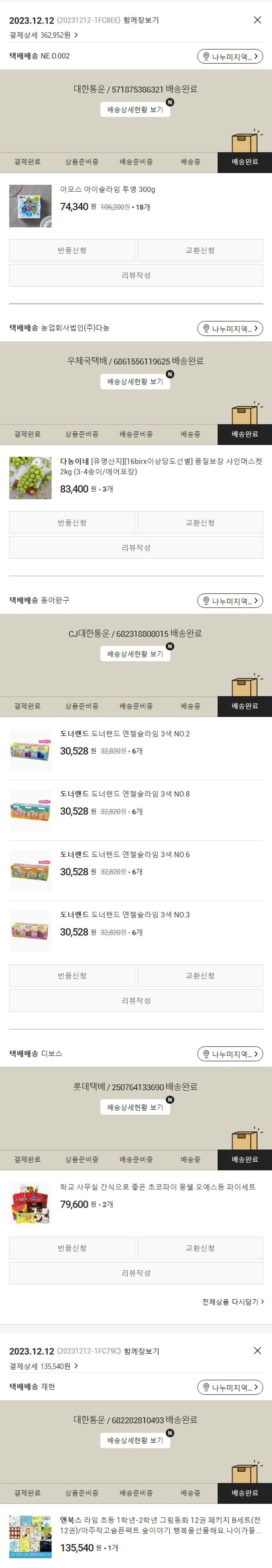 기부자님이 사용한 기부포인트 16,000원, 물품배송비 3,500원, 가격상승분 2,001원, 100원 미만 지원금 91원, 결제 수수료 12,117원, 기타 사업비는 행복나눔재단이 부담했습니다. (기부후기 발송시점에 최종 업데이트 됩니다.) 실제 쇼핑몰에서 확인되는 배송현황을 캡처한 내용입니다. 실시간 자료와는 차이가 있을 수 있습니다.