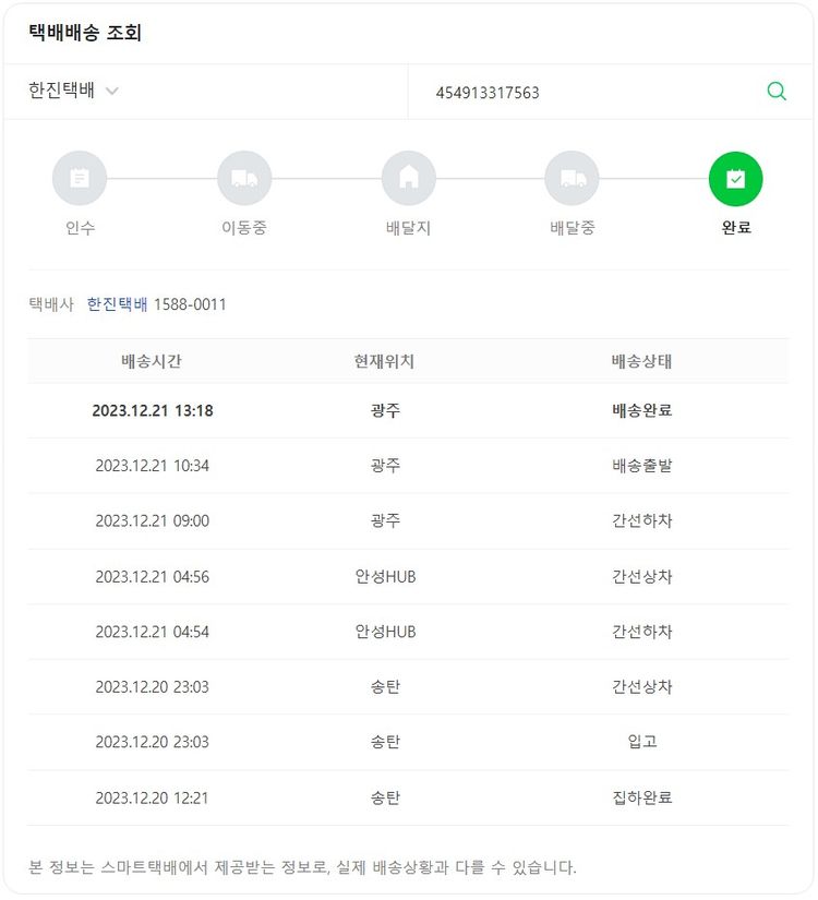 기부자님이 사용한 기부포인트 6,500원, SSG 머니 3,000포인트, 결제 수수료 9,440원, 기타 사업비는 행복나눔재단이 부담했습니다. (기부후기 발송시점에 최종 업데이트 됩니다.) 실제 쇼핑몰에서 확인되는 배송현황을 캡처한 내용입니다. 실시간 자료와는 차이가 있을 수 있습니다.