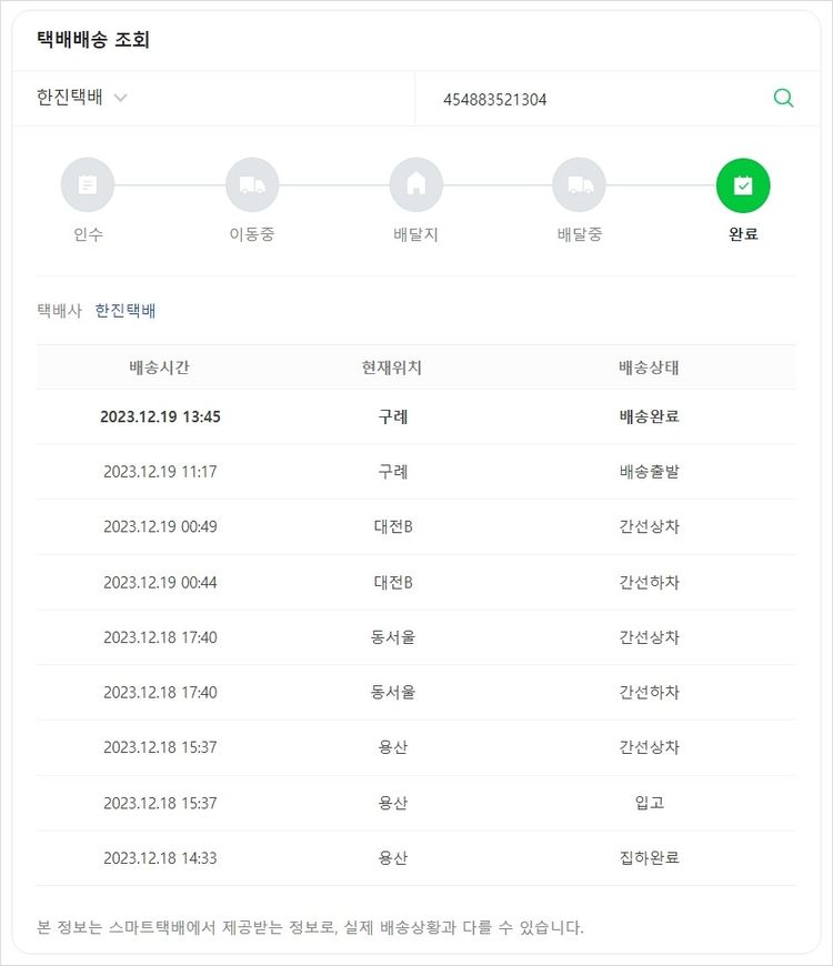 가격상승분 1,189원, 100원 미만 지원금 50원, 결제 수수료 9,350원, 기타 사업비는 행복나눔재단이 부담했습니다. (기부후기 발송시점에 최종 업데이트 됩니다.) 실제 쇼핑몰에서 확인되는 배송현황을 캡처한 내용입니다. 실시간 자료와는 차이가 있을 수 있습니다.