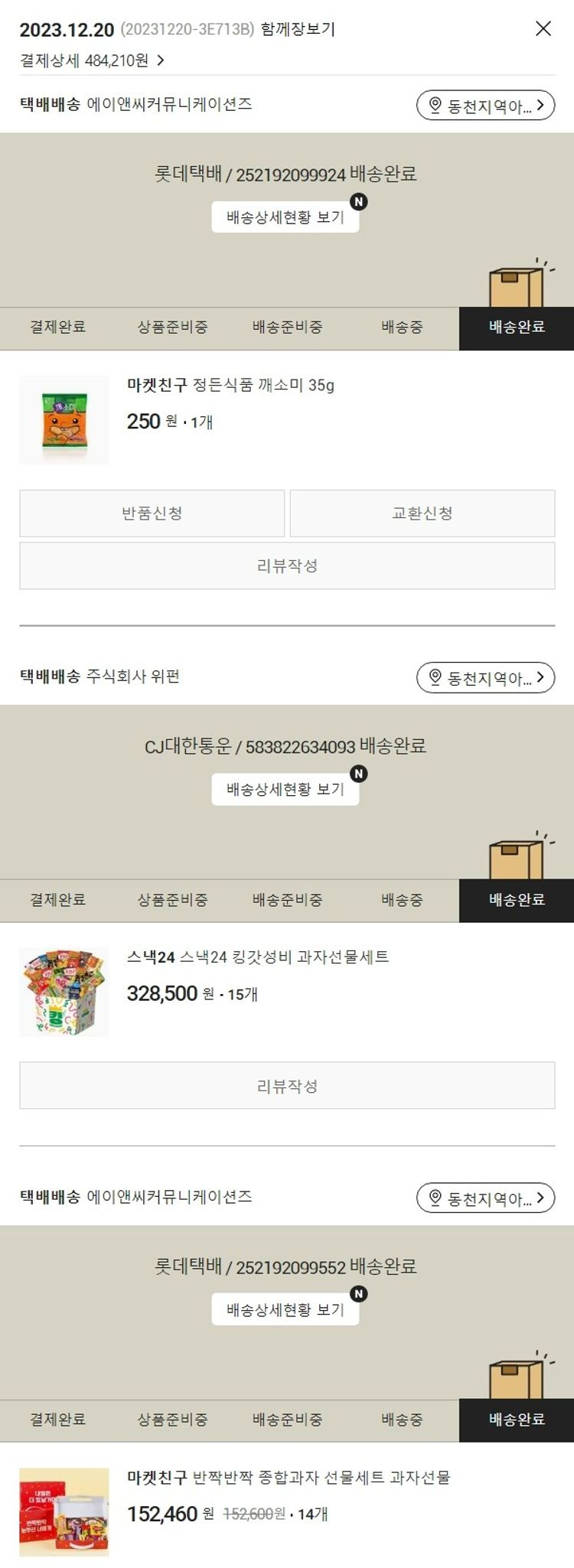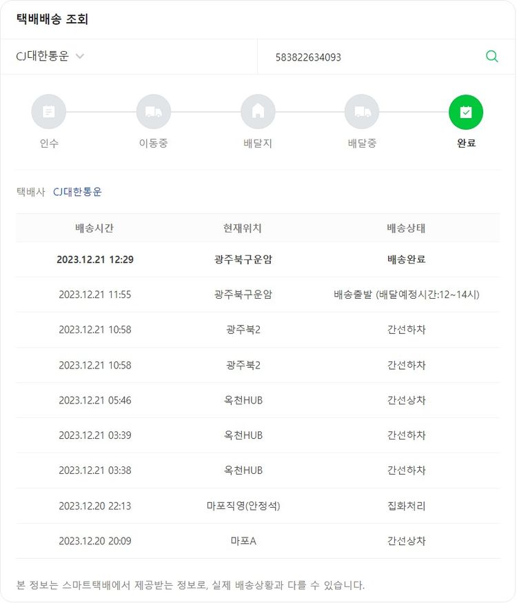 기부자님이 사용한 기부포인트 3,000원, 물품배송비 3,000원, 가격상승분 110원, 결제 수수료 12,290원, 기타 사업비는 행복나눔재단이 부담했습니다. (기부후기 발송시점에 최종 업데이트 됩니다.) 실제 쇼핑몰에서 확인되는 배송현황을 캡처한 내용입니다. 실시간 자료와는 차이가 있을 수 있습니다.