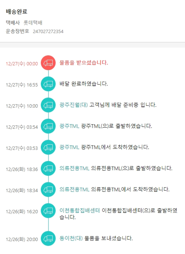 기부자님이 사용한 기부포인트 11,500원, 물품배송비 4,000원, 가격상승분 1,000원, 100원 미만 지원금 50원, 결제 수수료 13,807원, 기타 사업비는 행복나눔재단이 부담했습니다. (기부후기 발송시점에 최종 업데이트 됩니다.) 실제 쇼핑몰에서 확인되는 배송현황을 캡처한 내용입니다. 실시간 자료와는 차이가 있을 수 있습니다.