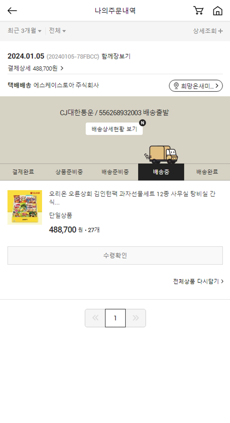 기부자님이 사용한 기부포인트 3,000원, 결제 수수료 14,031원, 기타 사업비는 행복나눔재단이 부담했습니다. (기부후기 발송시점에 최종 업데이트 됩니다.) 실제 쇼핑몰에서 확인되는 배송현황을 캡처한 내용입니다. 실시간 자료와는 차이가 있을 수 있습니다.