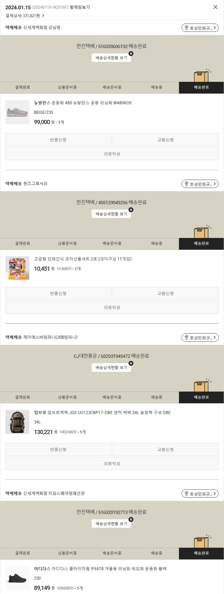 기부자님이 사용한 기부포인트 22,000원, 물품배송비 3,000원, 가격상승분 69원, 100원 미만 지원금 52원, 결제 수수료 7,082원, 기타 사업비는 행복나눔재단이 부담했습니다. (기부후기 발송시점에 최종 업데이트 됩니다.) 실제 쇼핑몰에서 확인되는 배송현황을 캡처한 내용입니다. 실시간 자료와는 차이가 있을 수 있습니다.