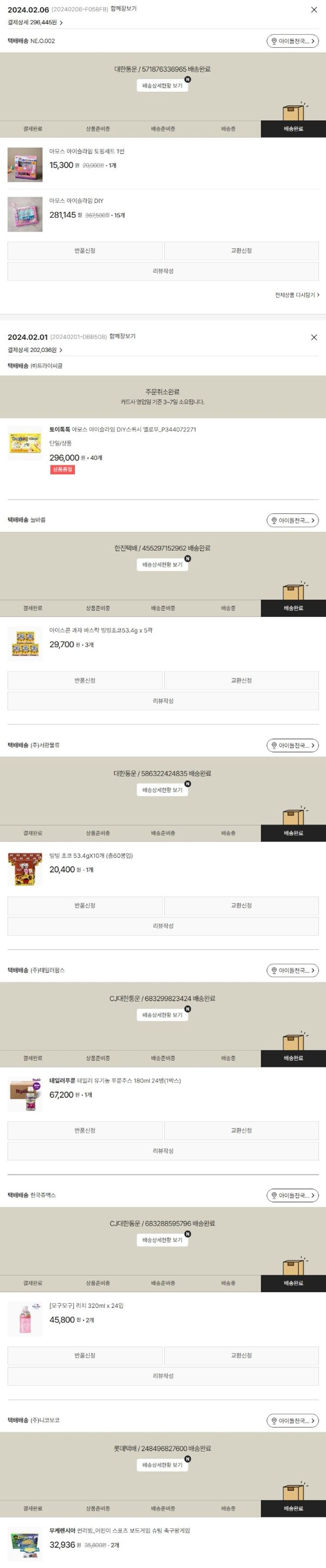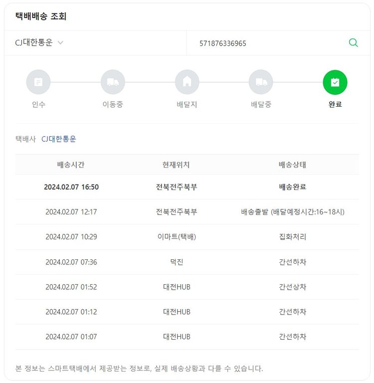 기부자님이 사용한 기부포인트 13,000원, 물품배송비 6,000원, 가격상승분 1,145원, 100원 미만 지원금 36원, 결제 수수료 14,686원, 기타 사업비는 행복나눔재단이 부담했습니다. (기부후기 발송시점에 최종 업데이트 됩니다.) 주문 건 중 품절 건 발생하여 2024. 02. 06. 재주문했습니다. 실제 쇼핑몰에서 확인되는 배송현황을 캡처한 내용입니다. 실시간 자료와는 차이가 있을 수 있습니다.