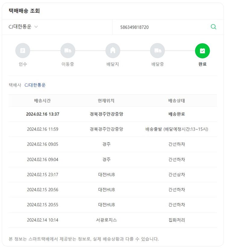 기부자님이 사용한 기부포인트 14,500원, 가격상승분 140원, 100원 미만 지원금 70원, 결제 수수료 12,304원, 기타 사업비는 행복나눔재단이 부담했습니다. (기부후기 발송시점에 최종 업데이트 됩니다.) 실제 쇼핑몰에서 확인되는 배송현황을 캡처한 내용입니다. 실시간 자료와는 차이가 있을 수 있습니다.