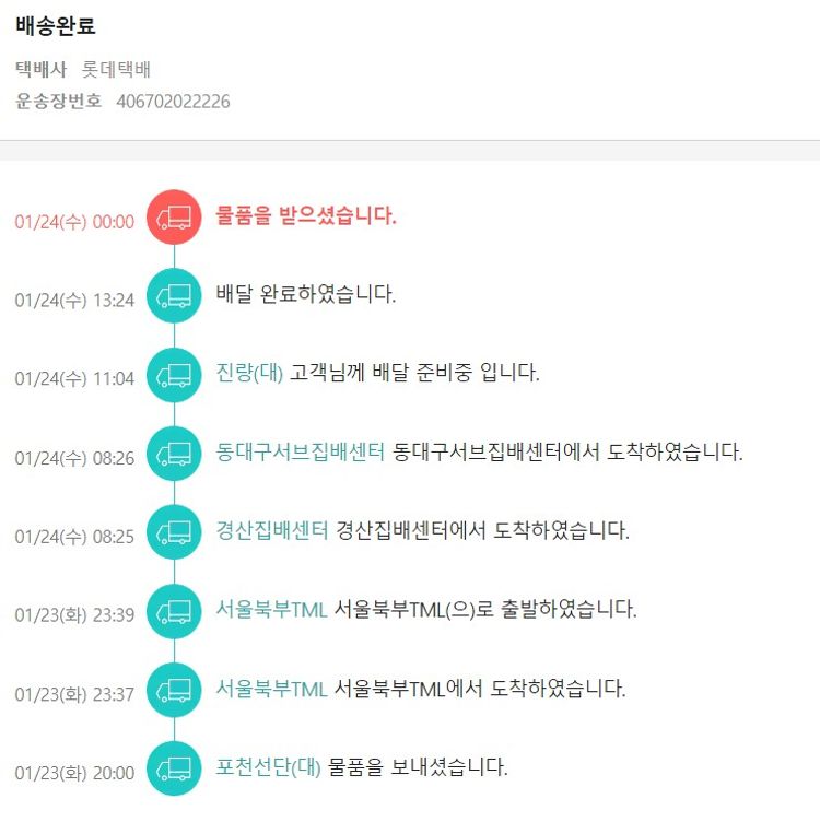 기부자님이 사용한 기부포인트 16,000원, 물품배송비 17,500원, 100원 미만 지원금 61원, 결제 수수료 11,471원, 기타 사업비는 행복나눔재단이 부담했습니다. (기부후기 발송시점에 최종 업데이트 됩니다.) 실제 쇼핑몰에서 확인되는 배송현황을 캡처한 내용입니다. 실시간 자료와는 차이가 있을 수 있습니다.