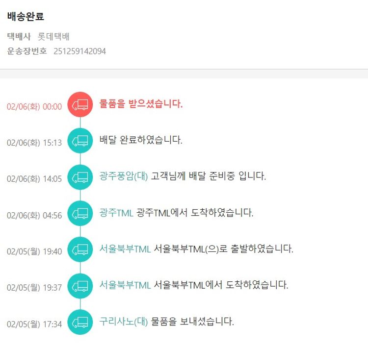 기부자님이 사용한 기부포인트 78,050원, 가격상승분 22원, 100원 미만 지원금 30원, 결제 수수료 9,782원, 기타 사업비는 행복나눔재단이 부담했습니다. (기부후기 발송시점에 최종 업데이트 됩니다.) 실제 쇼핑몰에서 확인되는 배송현황을 캡처한 내용입니다. 실시간 자료와는 차이가 있을 수 있습니다.