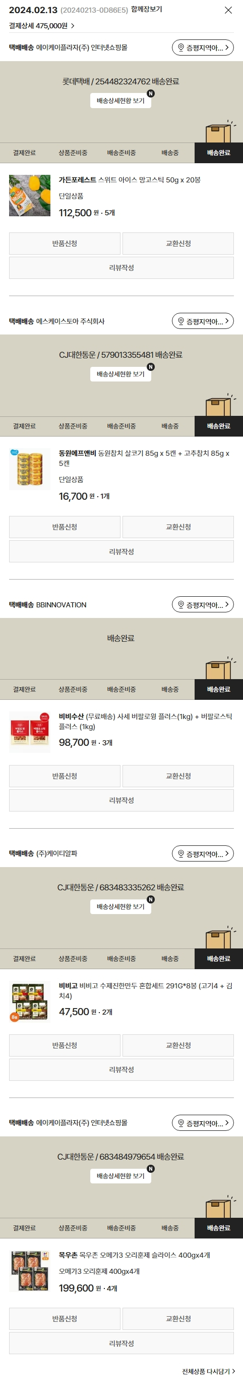 기부자님이 사용한 기부포인트 3,800원, 가격상승분 1,320원, 100원 미만 지원금 80원, 결제 수수료 10,850원, 기타 사업비는 행복나눔재단이 부담했습니다. (기부후기 발송시점에 최종 업데이트 됩니다.) 실제 쇼핑몰에서 확인되는 배송현황을 캡처한 내용입니다. 실시간 자료와는 차이가 있을 수 있습니다.