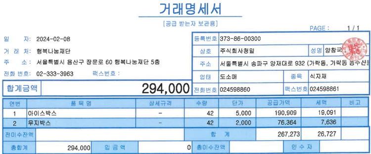 - 기타 발생하는 모든 비용은 행복나눔재단이 부담해요. (배송비, 수수료 등)