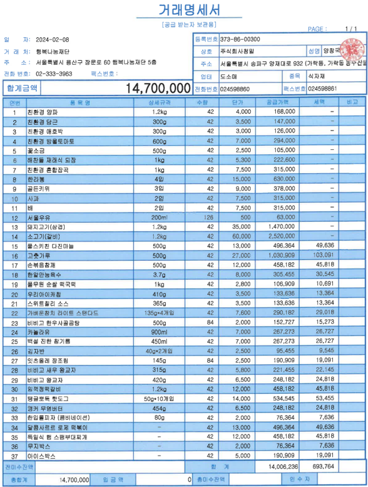 기부자님이 사용한 기부포인트 464,950원, 결제 수수료 357,384원, 기타 사업비는 행복나눔재단이 부담했습니다. (기부후기 발송시점에 최종 업데이트 됩니다.) 실제 쇼핑몰에서 확인되는 배송현황을 캡처한 내용입니다. 실시간 자료와는 차이가 있을 수 있습니다.
