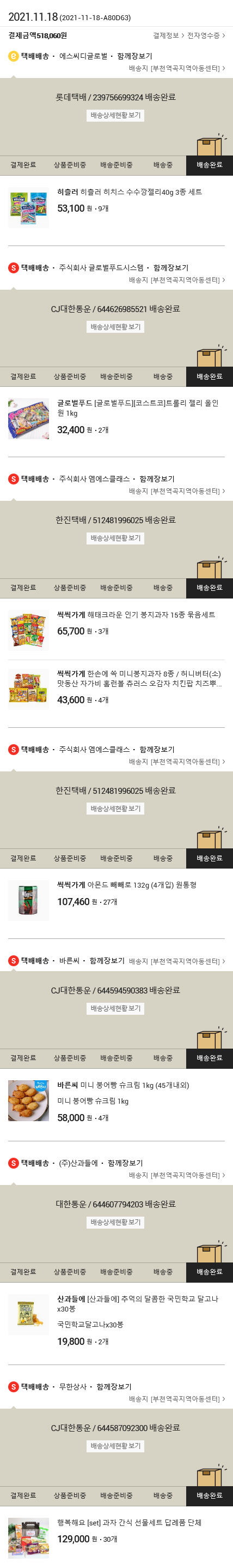 해태크라운 인기 봉지과자 15종 묶음세트3개 (개당 20,805원)