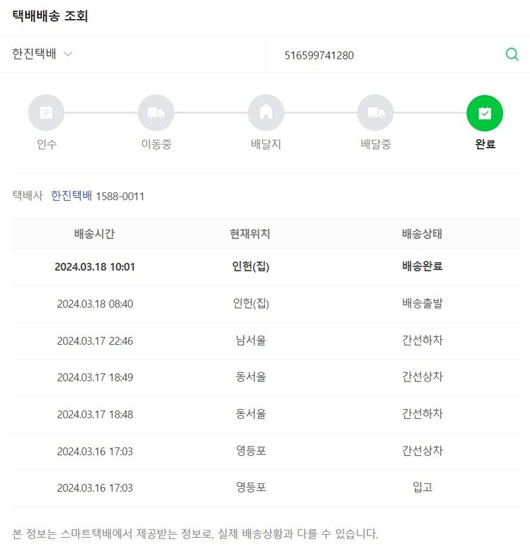 기부자님이 사용한 기부포인트 19,600원, 가격상승분 552원, 100원 미만 지원금 8원, 결제 수수료 18,384원, 기타 사업비는 행복나눔재단이 부담했습니다. (기부후기 발송시점에 최종 업데이트 됩니다.) 실제 쇼핑몰에서 확인되는 배송현황을 캡처한 내용입니다. 실시간 자료와는 차이가 있을 수 있습니다.