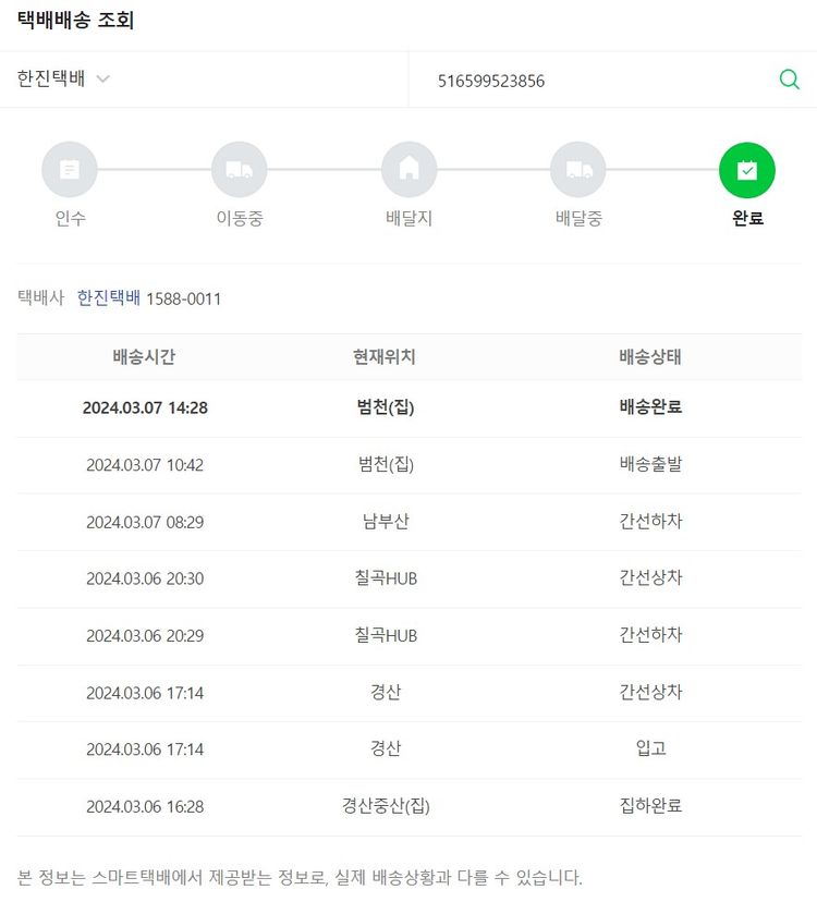 가격상승분 170원, 100원 미만 지원금 90원, 결제 수수료 11,743원, 기타 사업비는 행복나눔재단이 부담했습니다. (기부후기 발송시점에 최종 업데이트 됩니다.) 실제 쇼핑몰에서 확인되는 배송현황을 캡처한 내용입니다. 실시간 자료와는 차이가 있을 수 있습니다.